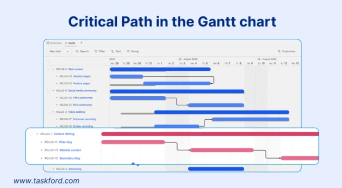 クリティカルパスとは何か、プロジェクトマネジメントにおける特定方法、そしてガントチャート上でどのように可視化できるのかを学びましょう。