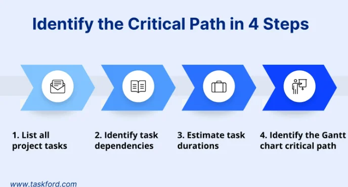 ガントチャートでクリティカルパスを特定することは、プロジェクトを予定通り進めるために欠かせません。以下の4つのステップでクリティカルパスを特定しましょう。