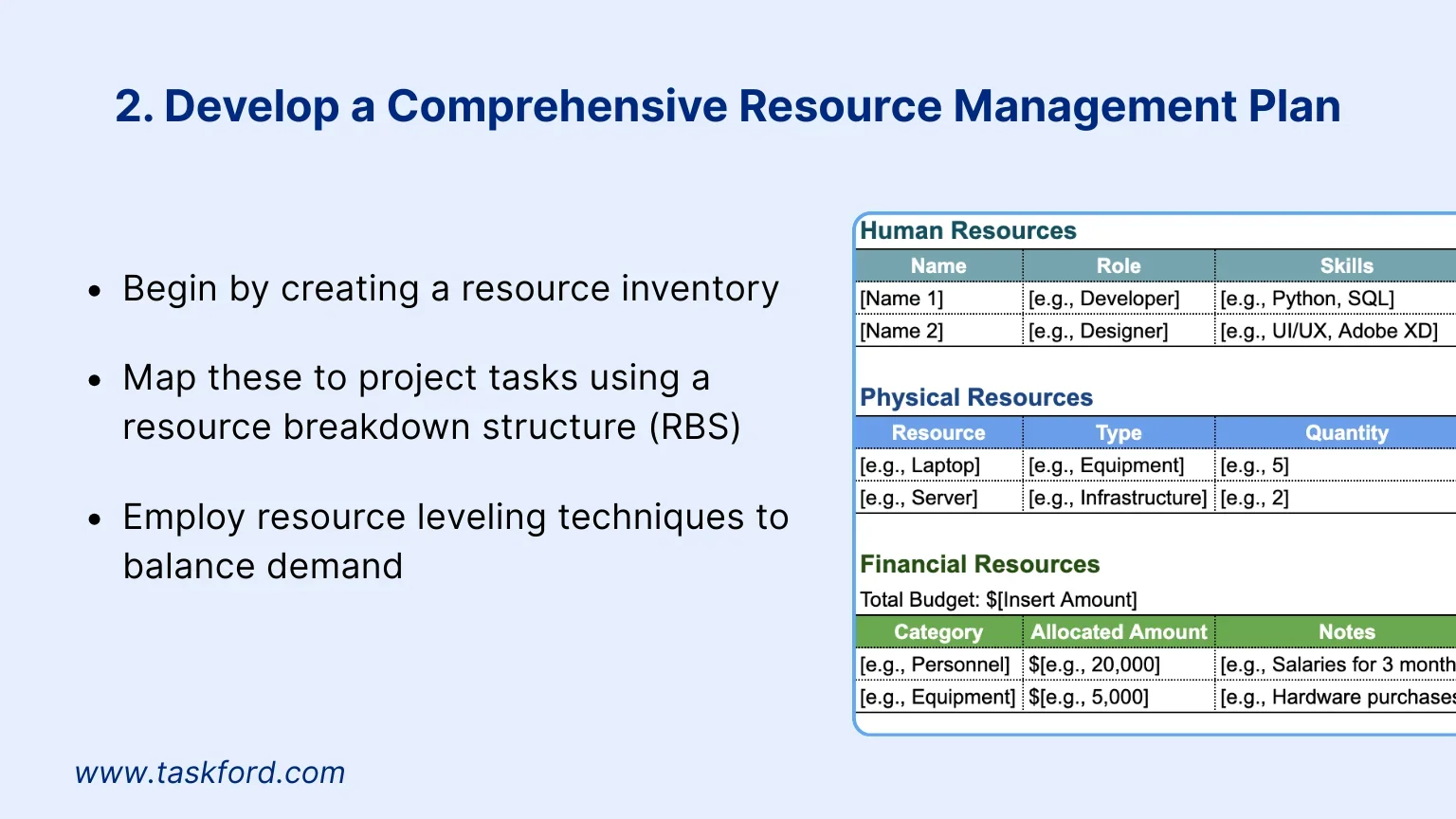 効率的なリソース管理は、人員・設備・予算をプロジェクト全体で効果的に配分するうえで不可欠です。包括的な計画は不足を防ぎ、無駄を減らし、プロジェクトを軌道に乗せます。