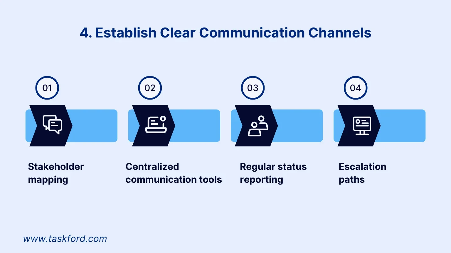 明確なコミュニケーションは、チームメンバーから経営層まで、ステークホルダーの整合を保つ鍵です。構造化されたコミュニケーション計画により、タイムリーで正確な情報伝達が可能となり、誤解や遅延を減らせます。