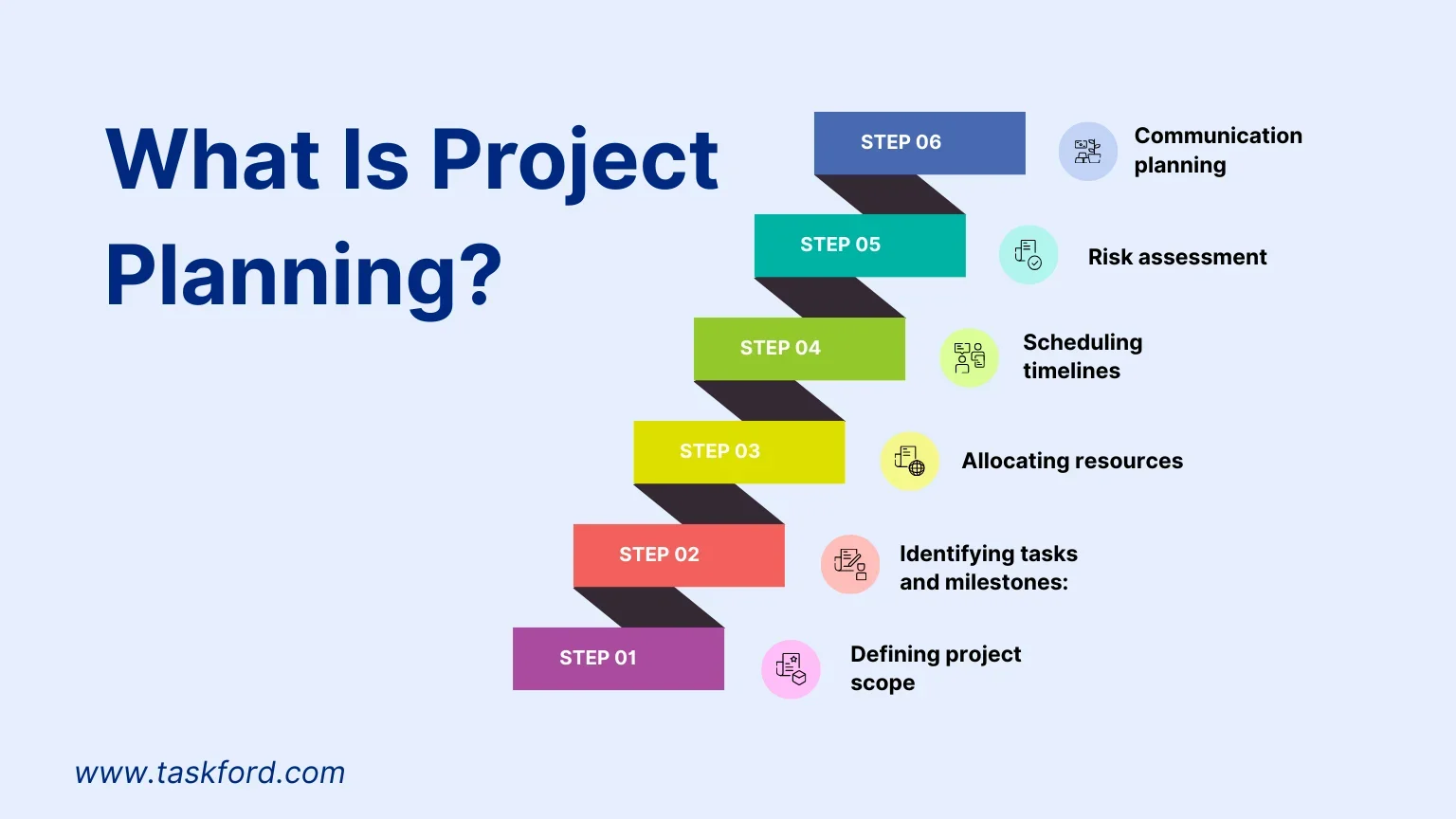 プロジェクト計画とは、プロジェクトの目標を定義し、必要なタスクを整理し、リソースを配分し、望ましい成果を達成するためのタイムラインを設定するプロセスです。これはプロジェクトのロードマップとして機能し、関係するすべてのステークホルダーに構造と明確さを提供します。