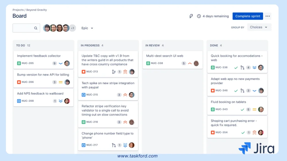 スクラムボード/カンバンボード、課題追跡、スプリント計画、3,000以上の連携(Confluence、Slack、GitHubなど)。強力なレポート機能によりスプリント進捗やチームパフォーマンスを可視化。