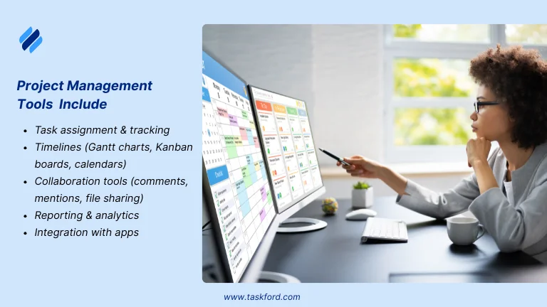 プロジェクト管理ツール(Project Management Software)は、プロジェクトの計画、管理、コラボレーションを支援するための多様な機能を提供します。代表的な機能は以下の通りです。