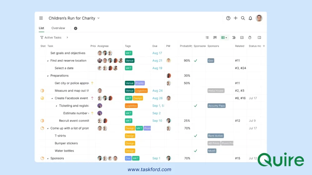 Quireは、シンプルながら階層型タスク管理に対応した軽量プロジェクト管理ツールです。 ネストされたタスク構造により、大きなプロジェクトを細かいステップに分解して管理できます。
