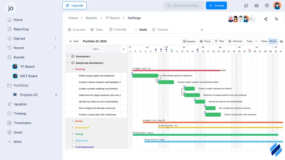 タスク、タイムトラッキング、リソース計画、レポートなど、必要な機能が一体化しており、ガントチャート機能も強力で、複雑なプロジェクト運営に向いています。