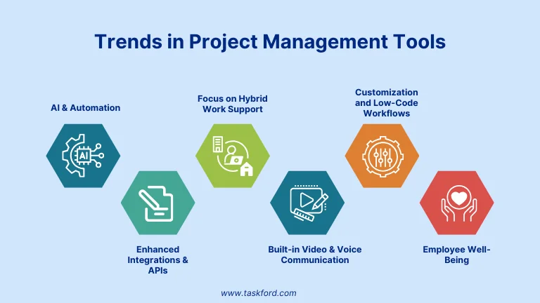 リモートワークと業務の複雑化に対応するため、プロジェクト管理ツールは継続的に進化しています。主なトレンドは以下の通りです。